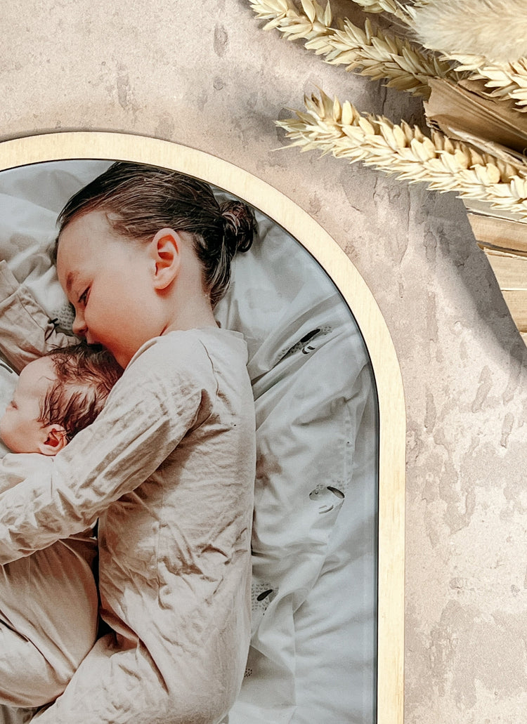 Available as a plain acrylic arch (with or without wooden stand) or with one of our gorgeous wooden frames. We can also personalise the wooden stand (with a max of 25 characters).