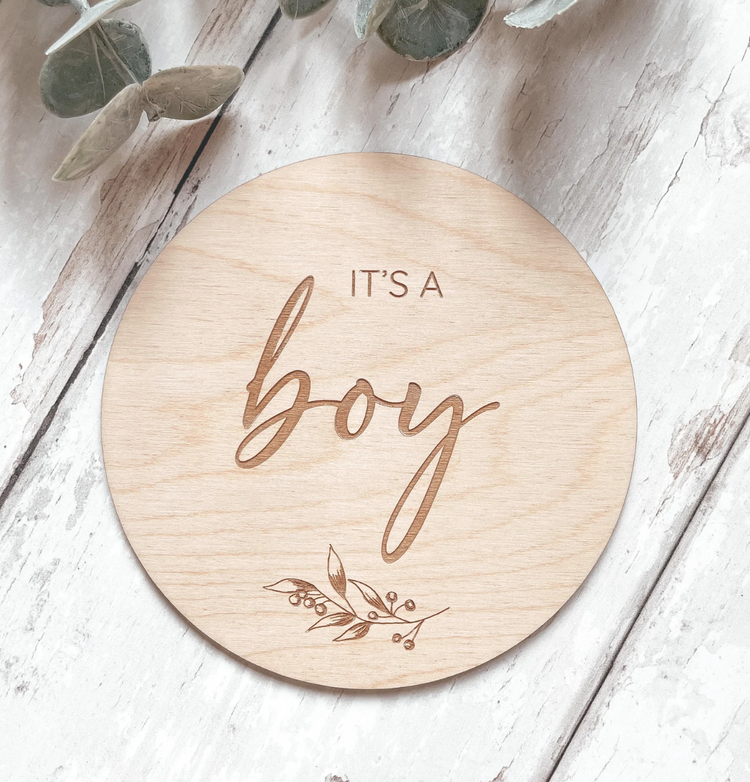 Our 'It's a Boy' disc is the perfect accessory for a gender reveal or baby shower. Featuring a beautiful leaf design, these make the loveliest flatlay props - perfect for those photo's shared with family and friends or Instagram.