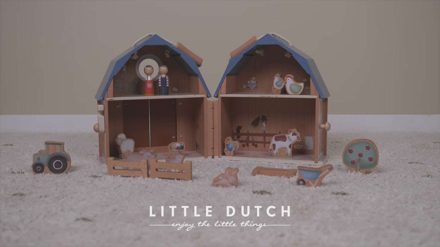 With this playhouse in the shape of a barn that stands on the farm, your little one will have so much fun! Open the barn and the animals will arrive. With all these wooden play figures, your child can create their own story, stimulating their imaginative thinking. And when playtime is over, simply store all the figures inside the playhouse, fold it back up, and tidy it away.