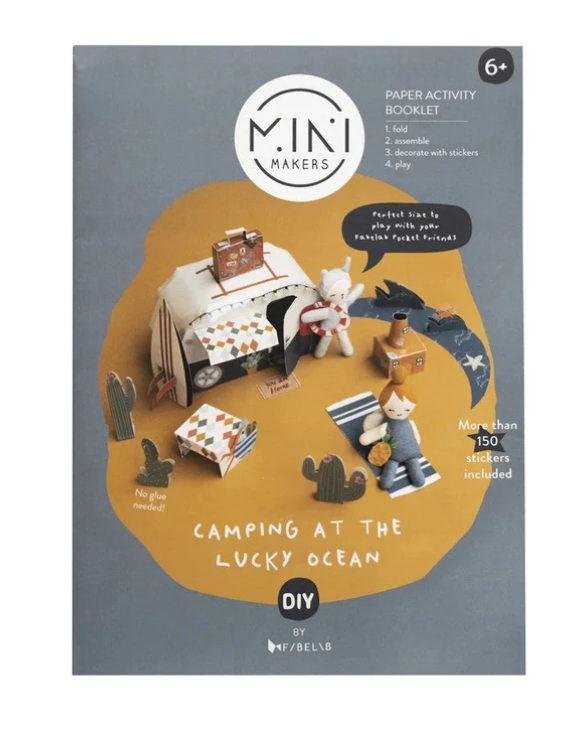 Minimakers Paper Activity Booklets are the perfect craft projects for your little one. This booklet follows the dear Pocket Friends while camping by the breezy Lucky Ocean and is the perfect size for imaginative role play. 6 pages of precut paper, 2 sticker sheets