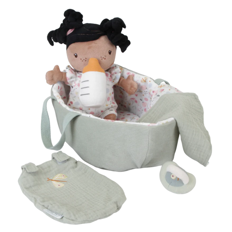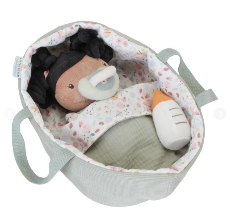 Little Baby Evi comes complete with a set of accessories, including cute pyjamas, sleep sack, reversible blanket, basket and nappy, plus a bottle and dummy with stay in place magnetic function. Children and toddlers will love to care for their dolls, and this sweet baby Evi set by Little Dutch is ideal for children who enjoy engaging in imitative play.