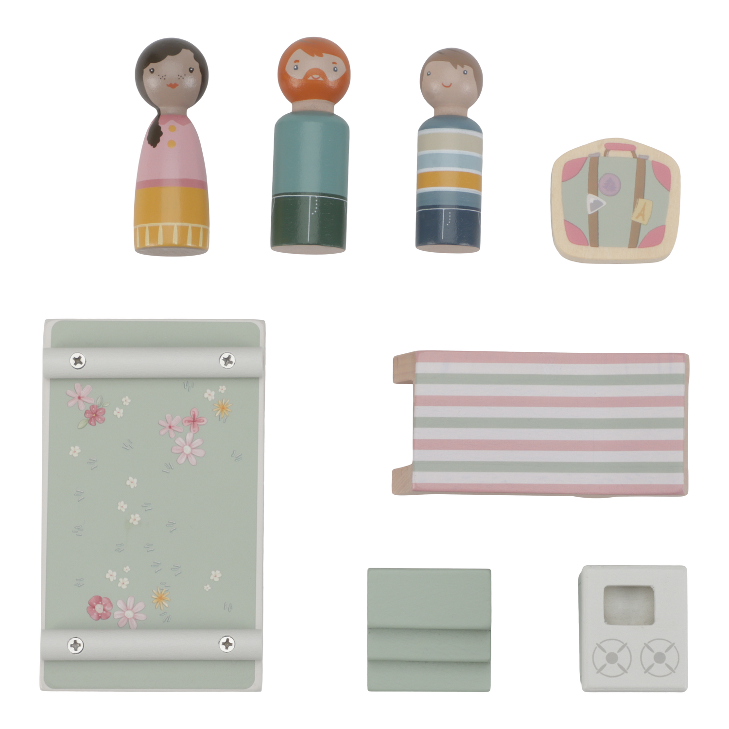 The smooth rolling wheels allow your little one to effortlessly ride across the floor, looking for new sites for a caravan sleepover. The door and roof of the caravan can open and the figures are compatible with the dollhouse and other playsets such as the airplane and school bus. Let your little one enjoy the magic of travel and discovery with this versatile wooden toy set.