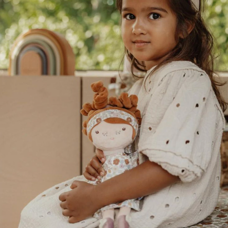 Meet Ava, the sweet plush cuddle doll from Little Dutch. Ava will be a perfect new best friend. With curly red hair and fun vintage dress, Ava loves to cuddle and will join in on every exciting adventure! This Little Dutch Ava is 35cm tall and can sit up. She comes in a beautiful presentation box, making her an ideal gift. The box can also be incorporated into play and is a perfect place for Ava to have a nap!