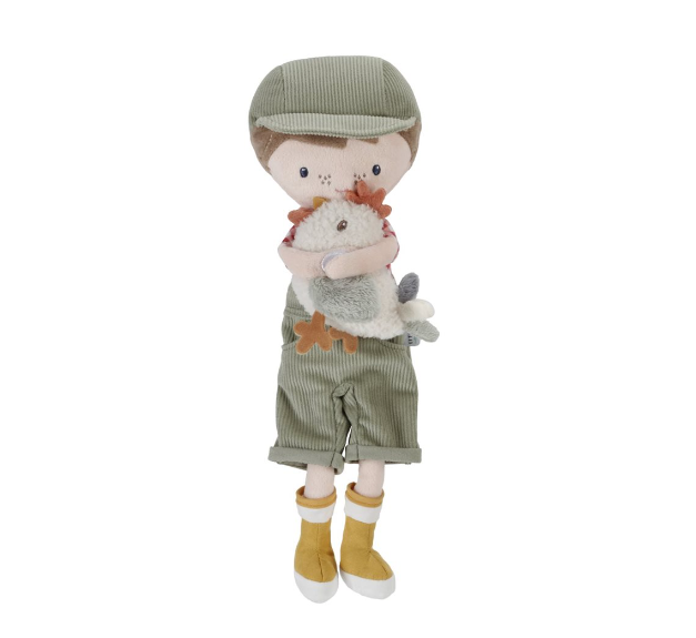 Meet Jim, the tough guy who loves to show you his farm! Together with the chicken, he experiences many adventures on the farm. This plush cuddle doll comes in a beautiful box.