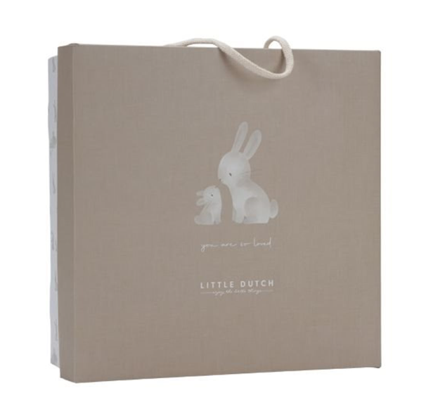 The Baby Bunny gift set from Little Dutch is the perfect gift for the lucky little one in your life. This set contains three irresistible items: the soft cuddly rabbit, the cuddly toy with cute rabbit head and soft ring rattle. The cuddly rabbit offers comfort and cuddly fun, while the cuddly toy becomes a favourite for games and cuddles. The ring rattle stimulates the baby's senses and motor skills.