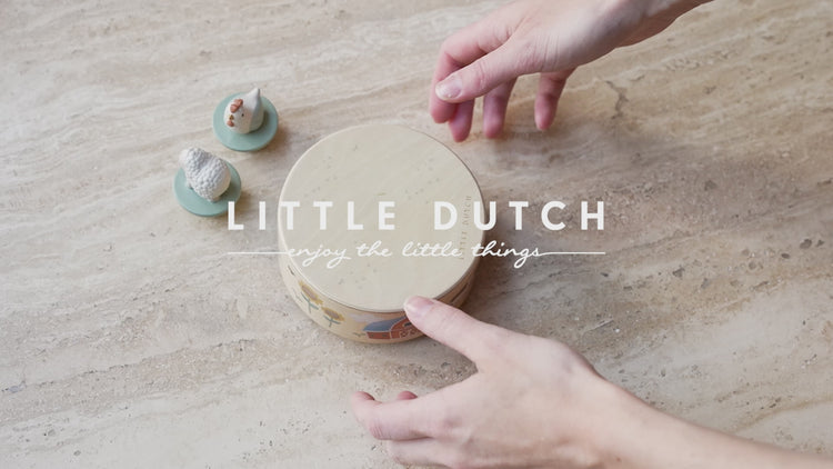 Watch the chicken and sheep spin, while music plays! This round shaped music box is decorated with a cheerful scene of the beloved Little Farm. Gently wind at the bottom and set the magical dance in motion. As the melody begins to play, the sheep and chicken gracefully dance to the familiar notes of "Old MacDonald Had a Farm”. A wonderful gift that will bring smiles to the face of your little one as soon as the musical journey of the Little Farm starts to play.