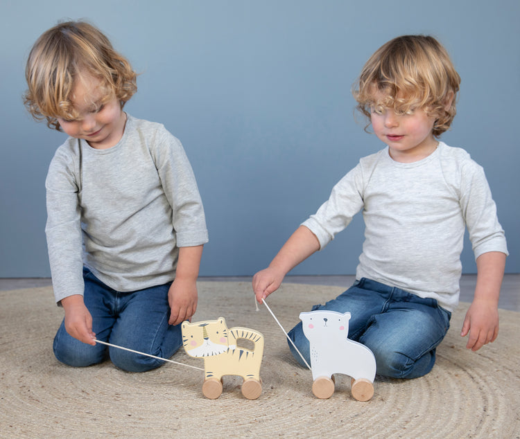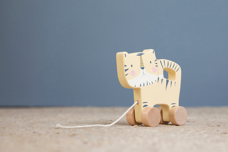 This super cheeky tiger is always looking for new friends and with his easy to grip pull along string for little hands, it's perfect for them pull around the room on their travels to explore and discover. Perfect for adventures and endless fun and play. Let hit the road! Nice to combine with the other pull along animals: the elephant and the polar bear.