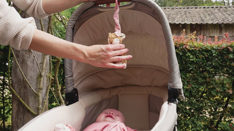 Make this lovely deer shake and move. The soft cuddly deer invites you give her a little pull and make her shake. This pull-and-shake toy is designed to easily attach to a car seat, playpen, or stroller for hours of amusement at home or on the go. Made for little hands to grasp, it promises endless laughter and giggles.