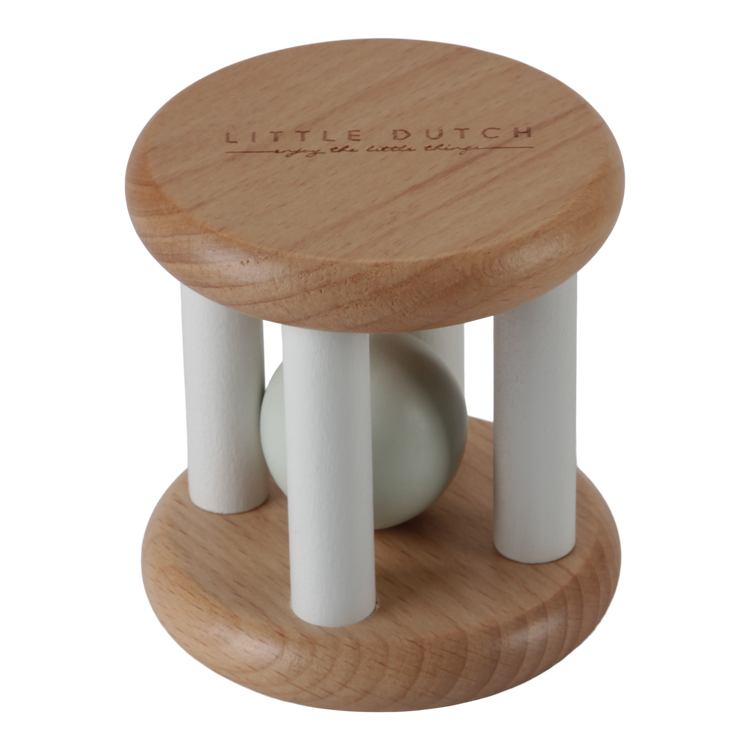 Roll and make the rattle sound! Keep rolling this wooden rattle, and the jingling bell sound continues. Try to grab it and shake the rattle back and forth for even more cheerful sounds. A fantastic toy, in the cute rabbit design from the Baby Bunny collection, to promote hand-eye coordination.