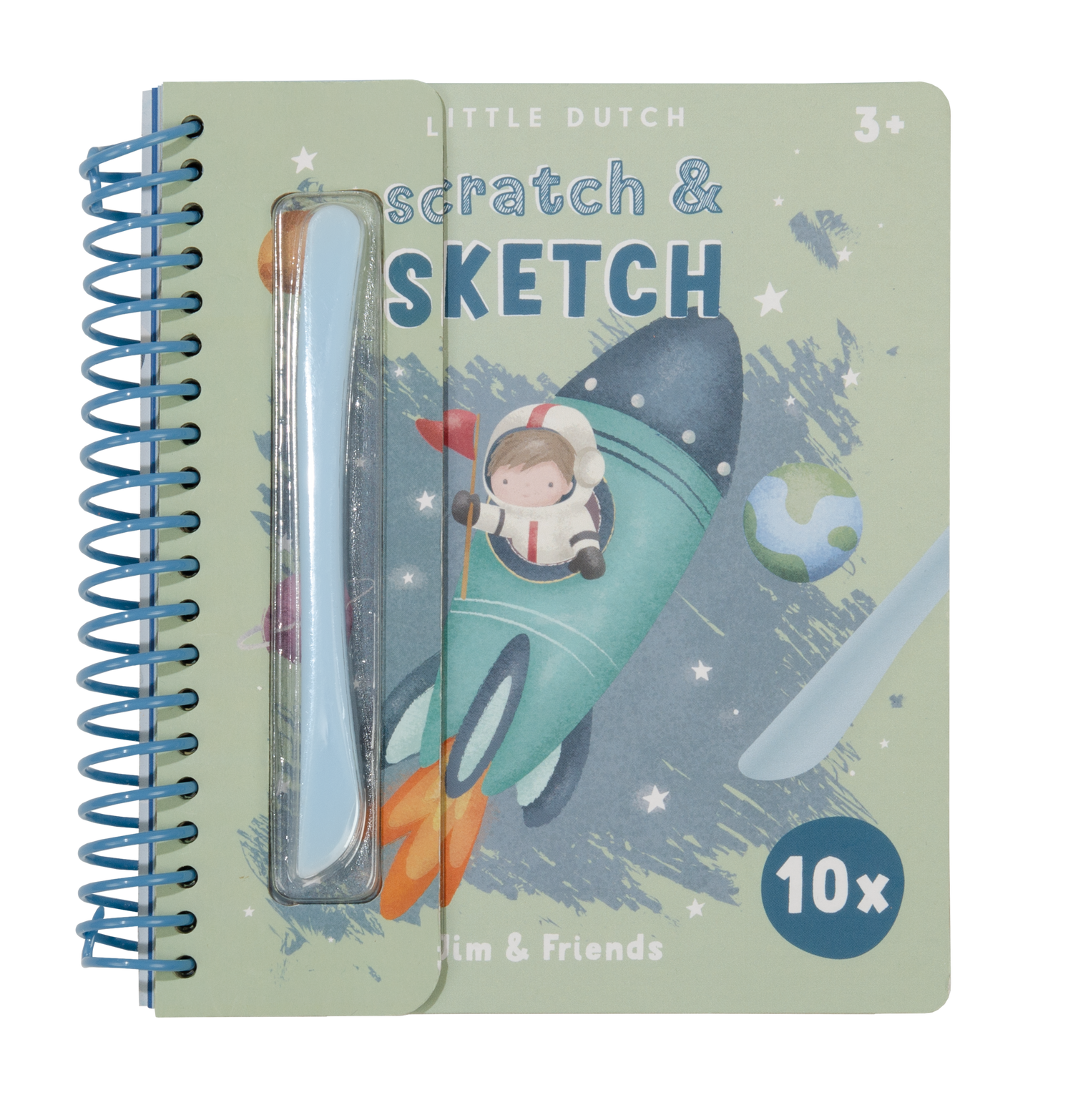 The scratch cards and colouring pages in Little Dutch's 'Jim & Friends' scratch and sketch book are a fun creative activity for budding artists. With the scratch pen, children can scratch on the scratch cards and the figures magically appear! Besides scratching, the most beautiful creations can be made on the colouring pages with the stencil. Go on an adventure with Jim on the farm, the track, in space, underwater, on safari, in the air and on water. The scratch and sketch set includes 10 scratch cards, 8 colouring pages, a stencil and a scratch pen.