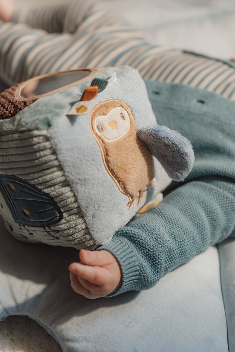 xplore the forest where all the Forest Friends live and play. Rendered in an array of appealing hues, this super-soft activity cube will trigger your baby’s curiosity. Every side features a different activity and is dressed in various textures, shapes and stimulating features. The cube can be grasped and rotated and comes with a mirror for self-discovery. It makes for endless entertainment while developing your child’s senses.