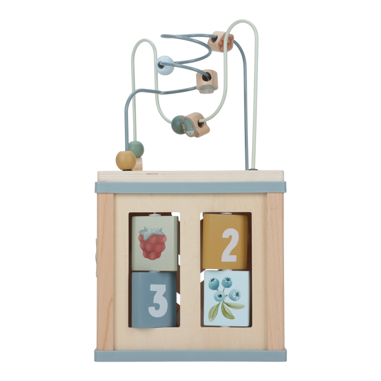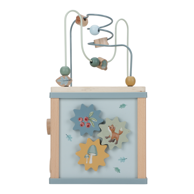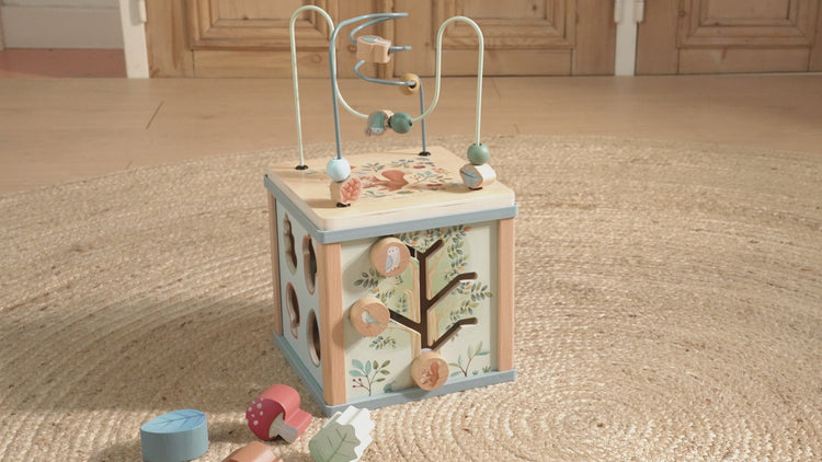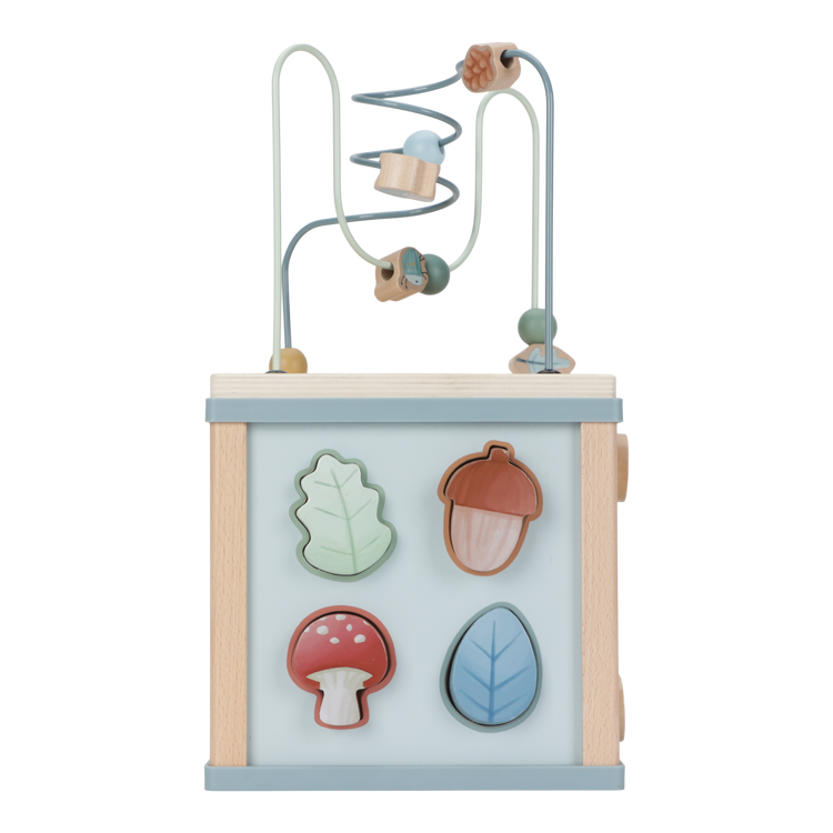 Emark on an adventure exploring every side of this entertaining cube of activities. Each side features delightful Forest Friends elements and presents a fun educational activity, including a shape sorter, spinning gears, puzzles, and a challenging bead maze on top. Through each engaging task, your little one will enhance fine motor skills and be inspired to unleash their creativity. This activity cube not only stimulates curiosity in children but also ensures hours of playful discovery.