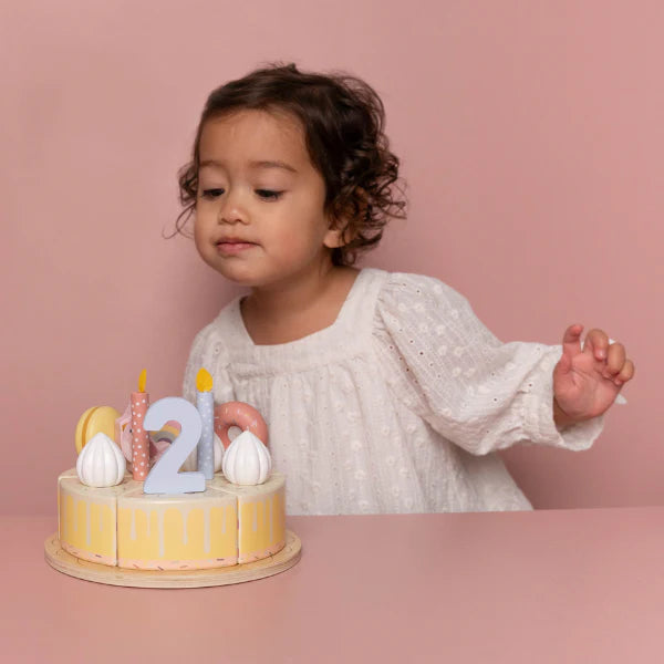 Hip hip hurrah! Bring out the garlands, because with our cake, every day is a party! Decorate your cake with a macaron, donut, rainbow, animal and whipped cream and treat all guests to a piece. Have fun at the party. The set includes six pieces of cake on a tray, a cake server, donut, macaron, lion, fox, rainbow, candles, whipped cream toppers and number toppers (1-5).