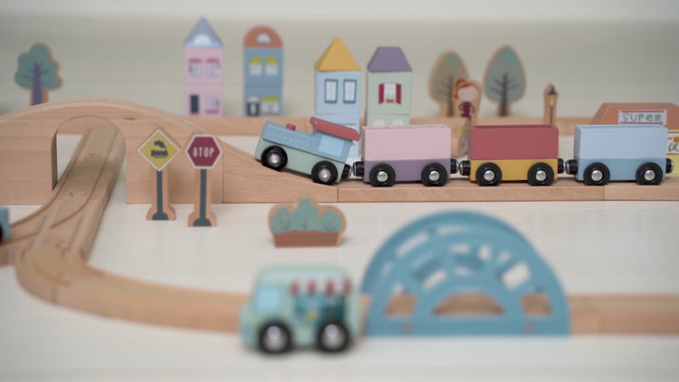 Is there a fire anywhere? Quickly open the doors and let the fire engine through. Oh no! It’s a kitty stuck in a tree! Luckily, the fire fighters come to the rescue. The expansion features fires, employees, trees, burning trash can, water pump, dog, fire truck with ladder truck and fire station (12 parts). Each of the wooden figurines and elements has detailed illustrations on both sides. Additional playsets, such as a vehicles set, a train set and a garage, are available for even more hours of fun play.