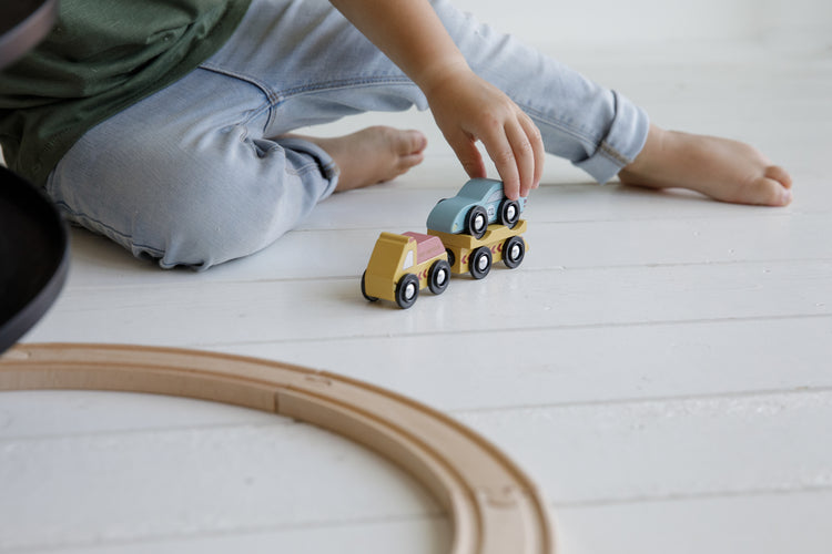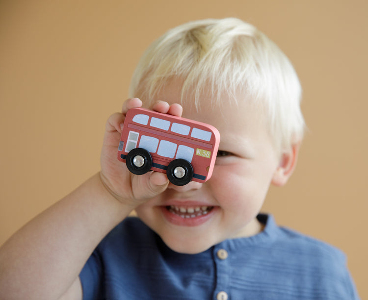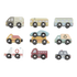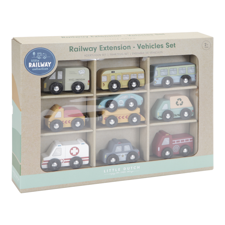 A set of 9 assorted vehicles. These wooden service and emergency vehicles fare designed to be used in combination with the Little Dutch wooden railway train set, but fit any universal track line. Combine with the rest of the Little Dutch Railway collection for the ultimate gift.