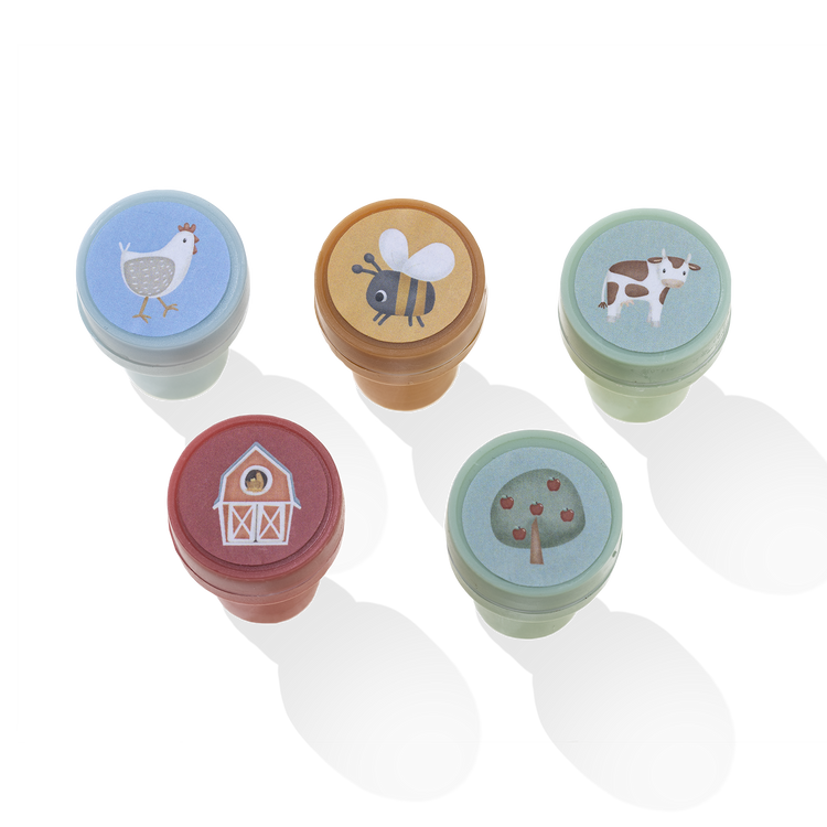 Let your little one create their own farm adventures with the Little Farm stamps. This stamp set contains 16 different stamps, including cute farm animals such as a cow, sheep and chicken, as well as a tractor, farm and sun. The stamps are self-inking, so no loose ink is needed - easy and ready to use straight away! A fun and easy way to stimulate children's creativity while developing their fine motor skills. Suitable for children from 3 years old.