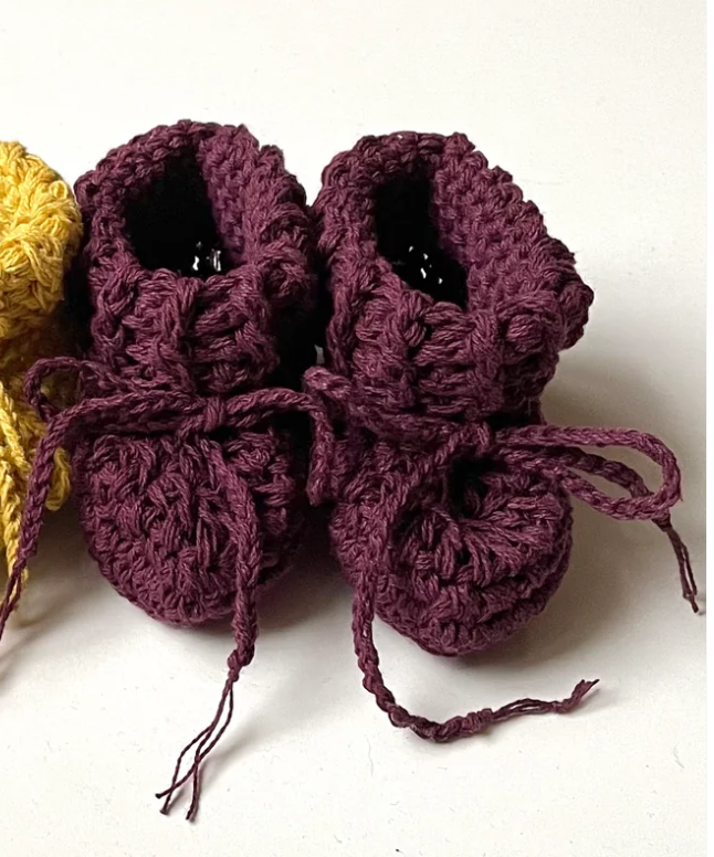 Gooseberry Fool Cotton Tie Booties - Mulberry