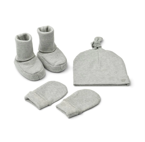 The Amora Baby Hamper is the perfect, soft and practical starter pack for a little new one. Featuring delicate embroidery details on the folds, it includes Alta mittens, Adora beanie, Aggi footies and Evig bodystocking.