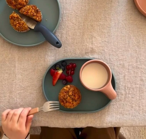 Part of the "chubby" tableware series, the Anita breakfast plate offers a clean, yet organic look for the juniors, who wish for a more mature dining set. A durable everyday plate in an oval shape, that blends into a stylish and subtle table setting.
