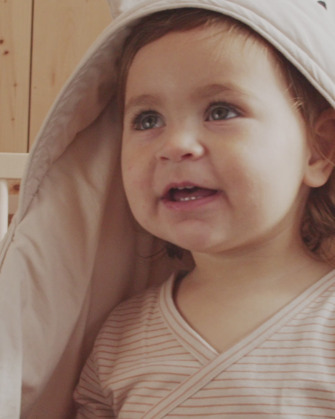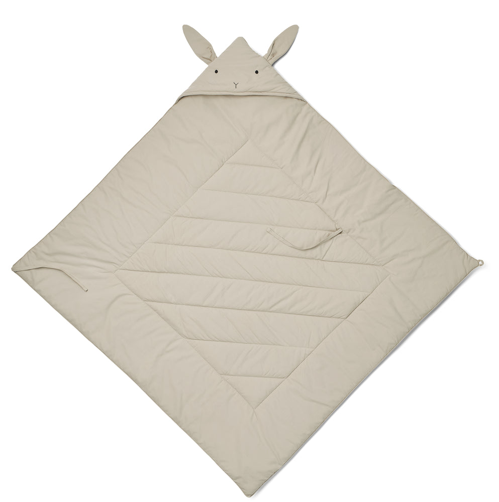 Snuggle up in the soft Daxton cotton wrap. Crafted from 100% organic cotton and recycled polyester, this wrap features a cute hood with rabbit face embroidery and ears attached at the top seam. With a string closure and loop to fasten around a button, this comforter-styled wrap is perfect for keeping your little one warm and cosy.