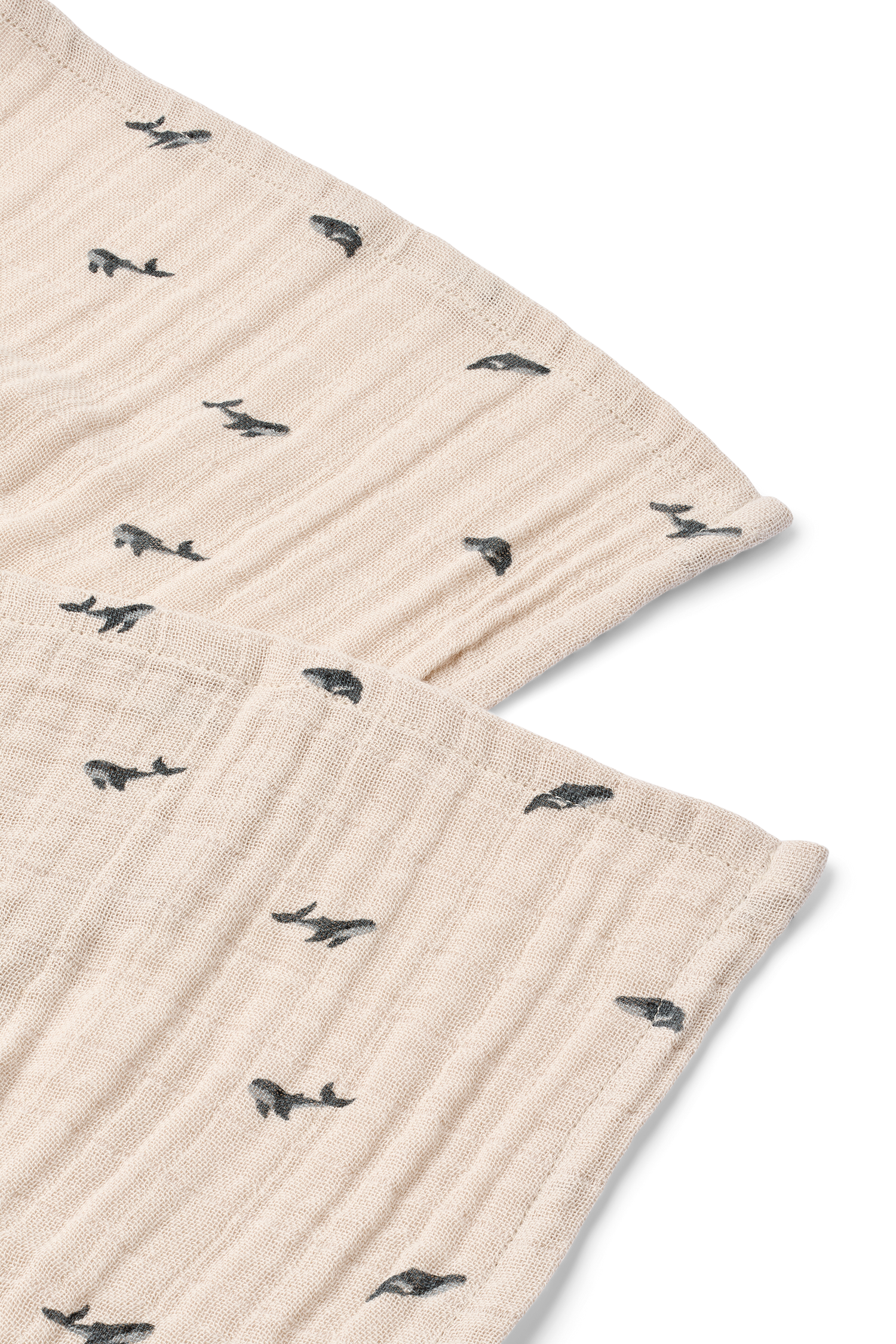 Liewood Lewis Muslin Cloth 2-pack - Mini Whale / Sandy