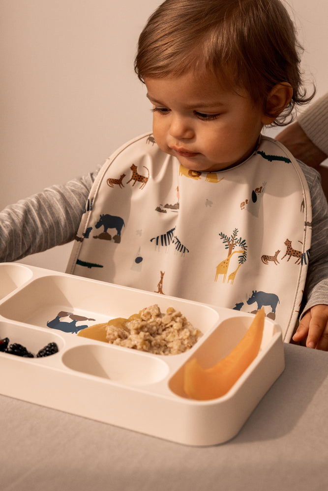 With curious little eaters in mind, the MOSU divider plate has a wide design with six individual compartments, meaning you can offer your little one different kinds of food and servings for them to explore on their own. A new mealtime must-have that is stackable, dishwasher-safe, and supports your child's exploration of food.