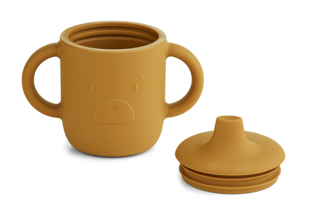 The Liewood Neil Cup in Sandy is a 'no-spill' training cup made of soft silicone, perfect for mastering the skill to drink. The cup has a removable lid with a small spout, and its smooth silicone handles ensure a tight grip that make it easy for unexperienced little ones to drink from.