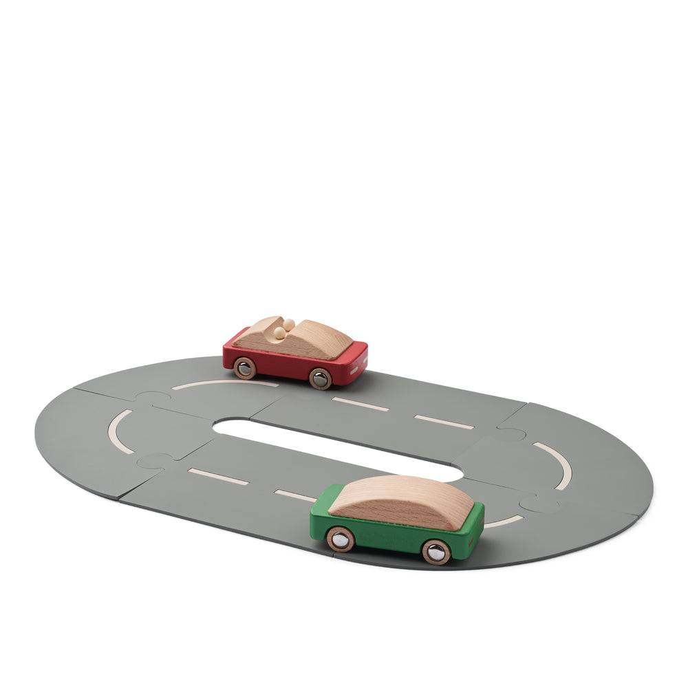 Get the traffic going in the Liewood Village with the set of wooden Village cars and roads. Includes 8 pieces in total, such as a sedan, a sports car and a 6-pack of Village roads, all made from beechwood and MDF for extra durability. Comes flatpacked for easy assembly and without small parts, making it safe for smaller children.