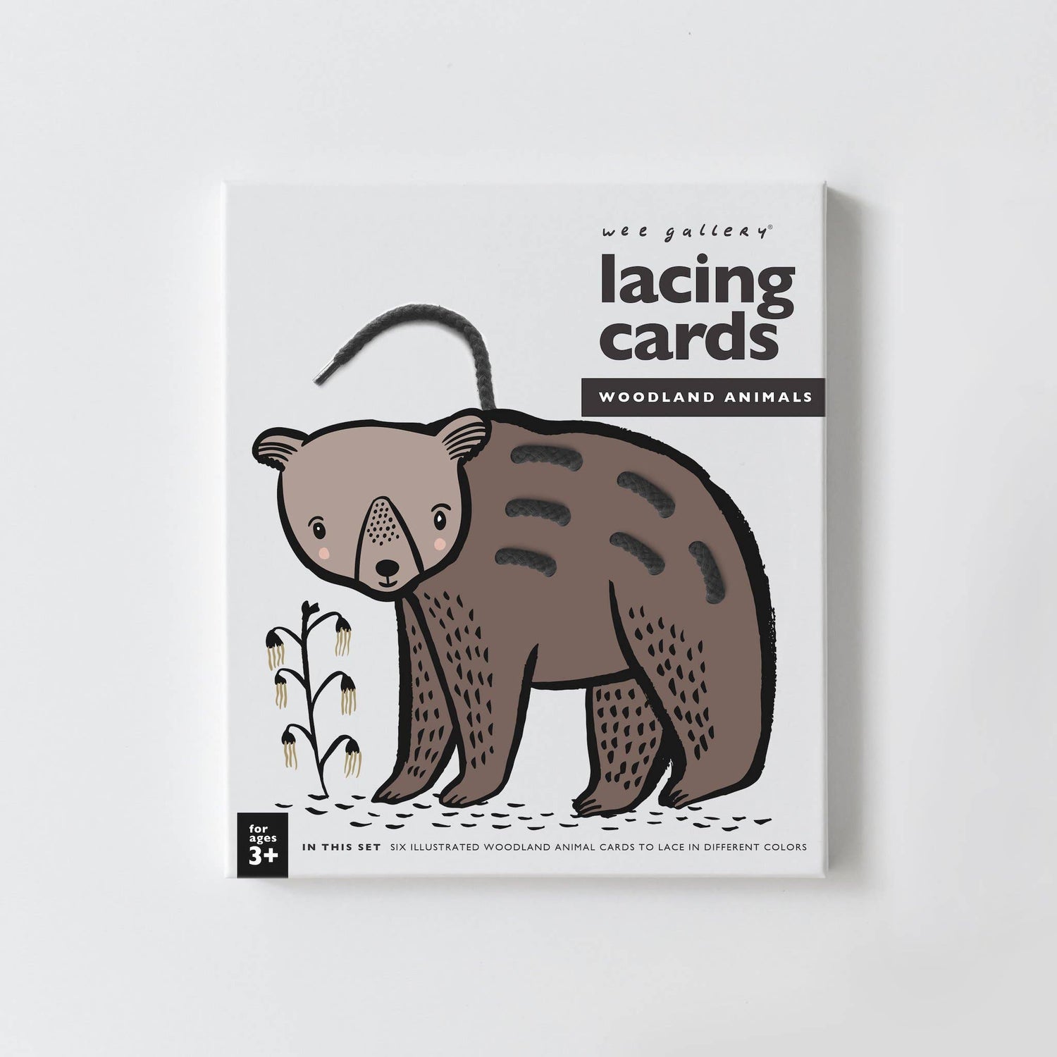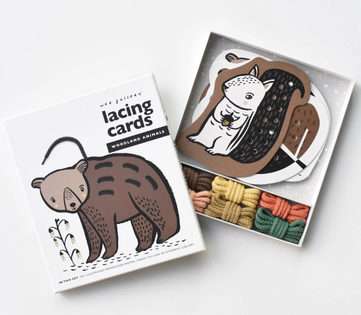 Dress up these adorable woodland animals in colour with our fun and educational Lacing Cards featuring Wee Gallery's signature hand illustrated characters. These six sturdy and durable Lacing Cards encourage hand-eye coordination and develop motor skills, colour identification, dexterity and an acute fashion sense! Printed on thick, sturdy board, they are perfect for little hands.
