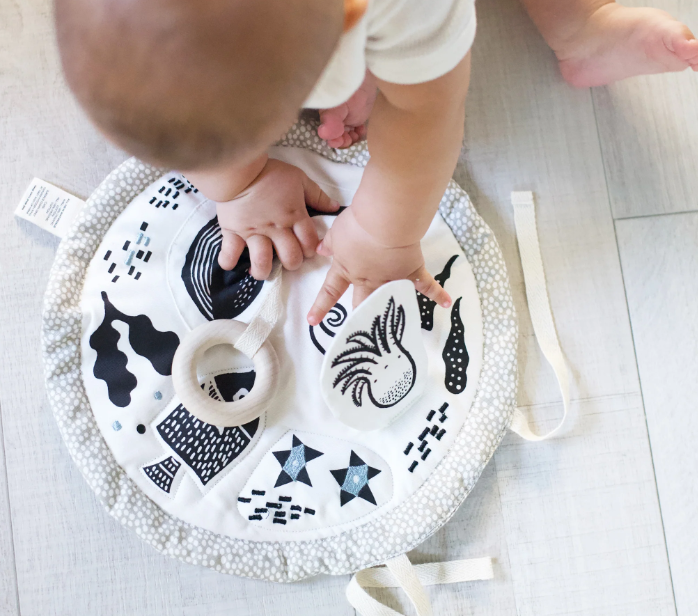 Great for tummy time play! Your baby will be entertained as they interact with the adorable illustrated animal graphics on the soft sensory play mat. Created especially for newborn to 12 month-olds to engage babies curiosity and encourage motor skill development.
