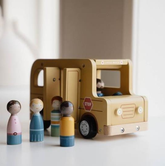Let the wheels of this school bus go round and round. Are all the children seated? Once the driver starts the engine you can embark on a journey filled with joy and discovery. Whether navigating through make-believe cityscapes or picking up imaginary passengers, this wooden vehicle will drive wherever you want to go.