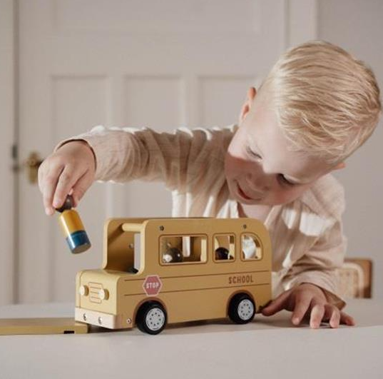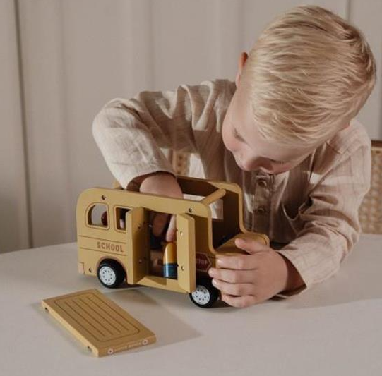 The smooth-rolling wheels allow your little one to effortlessly ride across the floor, picking up friends from every corner of the room. The door and roof of the wooden school bus can open and the figures are compatible with the dollhouse and other playsets such as the airplane and car with caravan. Let your little one enjoy the journey of storytelling with this versatile wooden toy set.