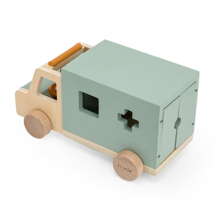 Our animal friends are on their way to help someone in need. This wooden ambulance immediately sparks children's imagination. The ambulance comes with a stretcher and multiple animals. Everything a child needs to create the wildest stories.