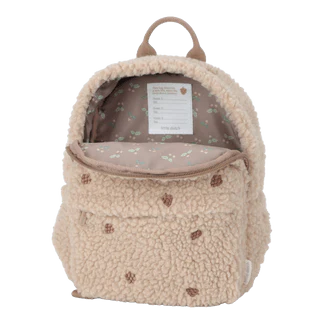 Go on an adventure together with this soft teddy backpack - perfect for little explorers to carry their belongings. This children's backpack combines comfort and style, with adjustable straps and plenty of space for everything your little one needs. Inside the bag, two elastic bands keep drink bottles upright to prevent leaks.