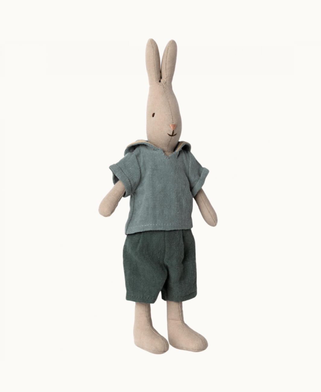 A classic rabbit made of soft natural linen and cotton fabric that gives a lovely hand feel and look. Size 2 rabbits fit into the Maileg dollhouse and all furniture size Mini. Buy loose clothes separately to expand the rabbit's wardrobe.